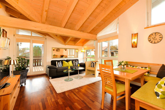 Die Wohnung ist folgendermaßen aufgeteilt: Wohnraum mit einer zusätzlichen Essecke, voll ausgestattete Küchenzeile, Doppelschlafzimmer